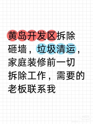黄岛开发区拆除搬运一站式服务|专业拆旧+高价回收+高效搬运 黄岛开发区本地专业拆除搬运团队,承接拆除砸墙、搬家搬运扛楼、拆橱柜衣柜木地板、铝合金门窗回收拆除全流程服务,持证施工、工具齐全、价格透明,靠谱不踩坑! 🌟 核心服务全覆盖 ✅ 拆除砸墙:家装/工装砸墙、墙体开门开窗、混凝土破碎、墙面/顶面拆除,精准施工不扰民✅ 全屋拆旧:专业拆橱柜、拆衣柜、拆木地板/地砖、拆吊顶隔断,旧房改造/毛坯房还原一站式搞定✅ 门窗回收拆除:高价回收铝合金门窗、旧门窗拆除清运,变废为宝,节省成本✅ 搬家搬运:居民搬家、公司搬迁、家具家电搬运、扛楼装卸,大小件物品安全搬运,高效省时 🛠️ 专业优势选我们 ✅ 本地深耕:熟悉黄岛开发区各小区/商圈施工细节,响应快速,就近派工✅ 设备齐全:配备专业拆除工具(环锯、电镐、水锯等),拆除精准、效率拉满✅ 安全规范:持证施工团队,全程做好防护,不损坏原有结构,杜绝安全隐患✅ 回收清运:拆除废料+门窗全流程清运,高价回收可利用物资,绿色环保✅ 价格透明:无隐形消费,先报价后施工,大小活都接,性价比拉满 📞 合作场景 适合新房装修拆旧、旧房改造升级、店铺/厂房拆除、居民搬家搬运、门窗更换回收等需求,个人业主、装修公司、企业单位均可合作! 📱 联系我们 黄岛开发区本地直连,随时咨询报价、预约上门,专业团队为你省心省力~(可添加联系方式/微信,标注“黄岛拆除搬运”优先对接) 需要我帮你精简成适合朋友圈/58同城的短版文案,或者补充具体报价区间、服务案例吗?